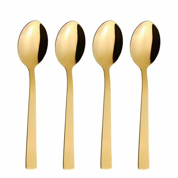 Dessertskeer i en flot guld farve. Skeerne kommer i sæt à 4 stk. og de fås også i andre farver her på Bahne.dk.